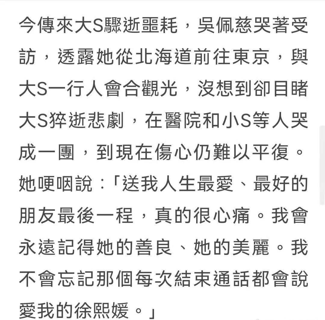 而这次吴佩慈一家也在日本旅游,还和大S家汇合了,可还没有好好聚一下,就亲眼目睹了她送医救治到去世的全过程。